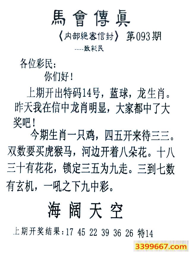 | 主题 :093期:首发推荐:≮馬會傳眞≯→(香港正版) |