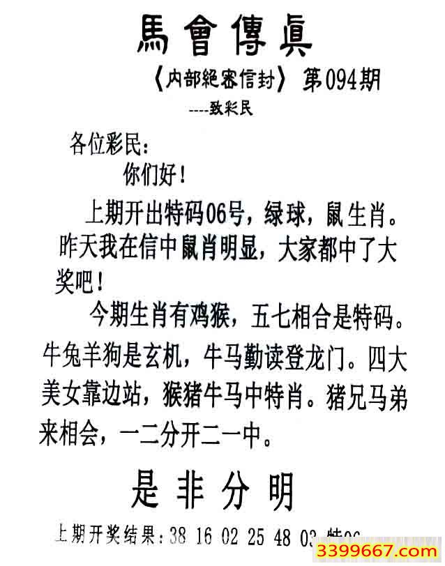 | 主题 :094期:首发推荐:≮馬會傳眞≯→(香港正版) |