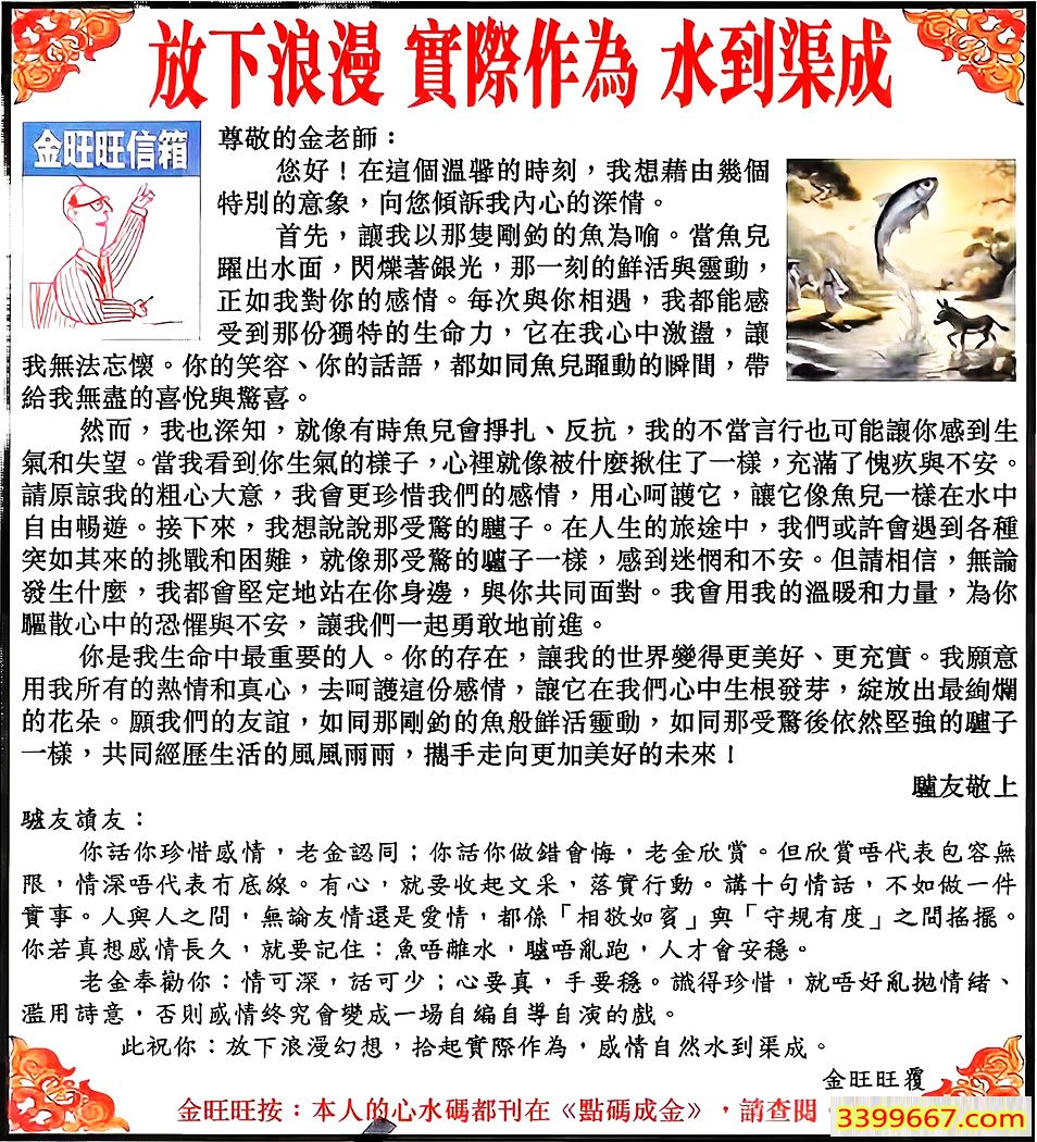 | 主题 :103期:金旺旺信箱彩民推荐→→《放下浪漫 實際作為 水到渠成》 |