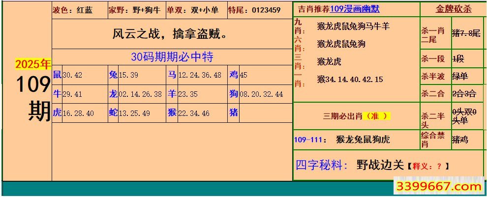 | 主题 :109期:小鱼儿30码期期中+幽默猜测 |