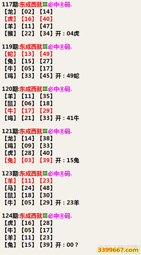 | 主题 :124期:东成西就Ⅲ必中⑧码 |