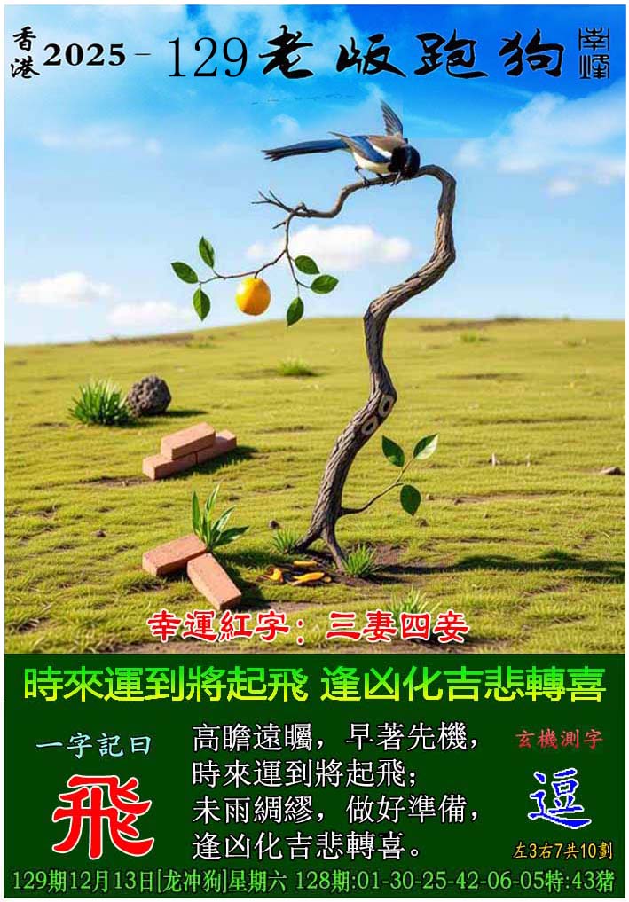 主题 :129期老版跑狗一字記之曰:【飛】 玄機測字:《逗》