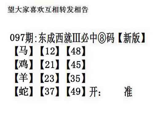 | 主题 :097期:另版【东成西就四肖8码】 |