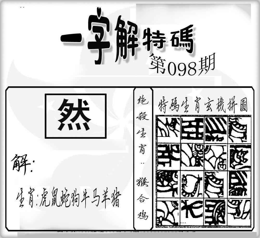 | 主题 :098期:一字解特码 |