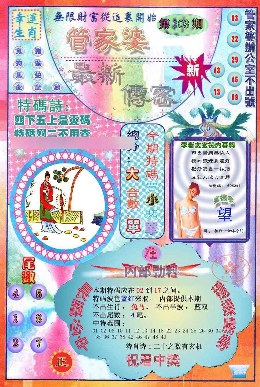 | 主题 :103期:最新管家婆传密 |