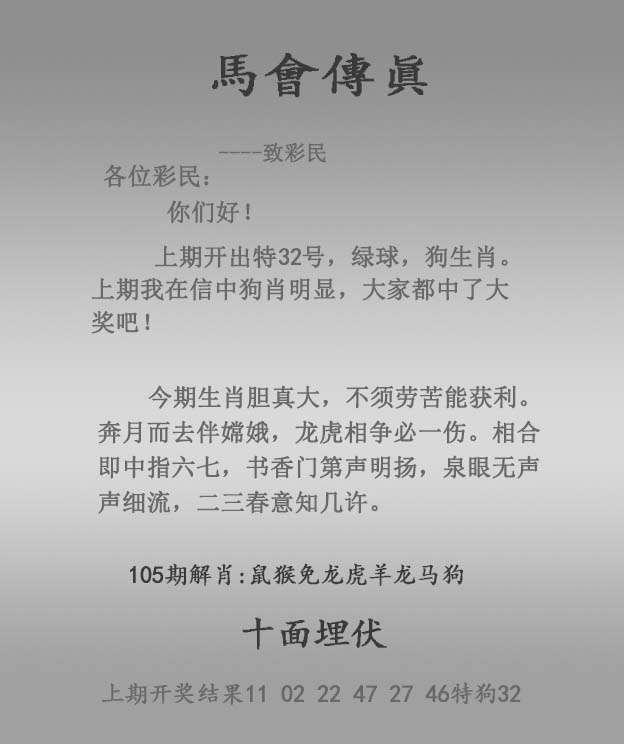 | 主题 :105期:正马会传真 |