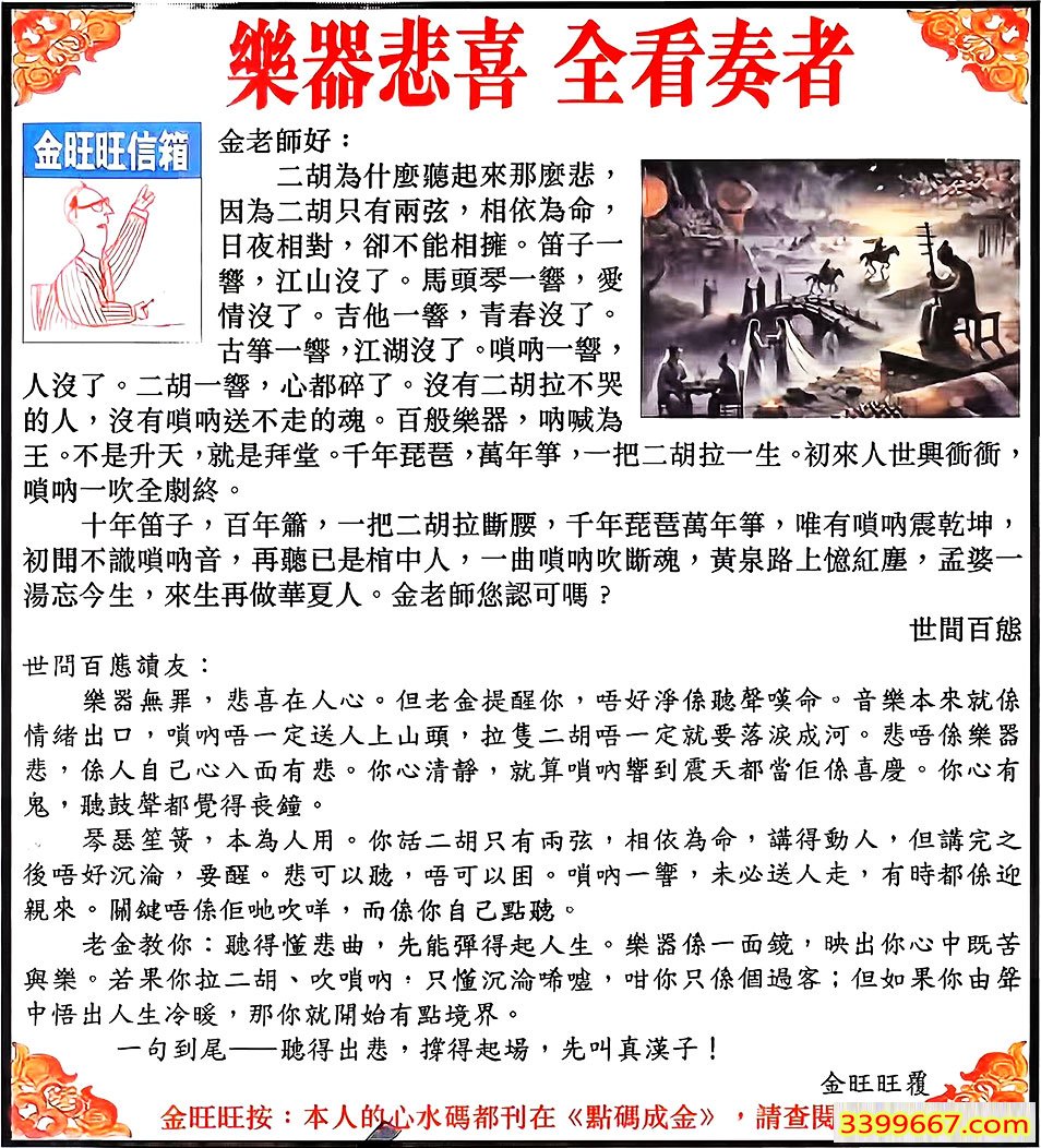 | 主题 :106期:金旺旺信箱彩民推荐→→《樂器悲喜 全看奏者》 |