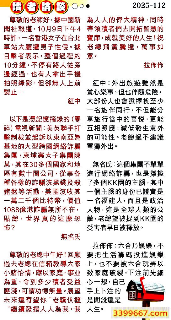 | 主题 :112期:彩民推荐〖貼信讀者論壇〗 |