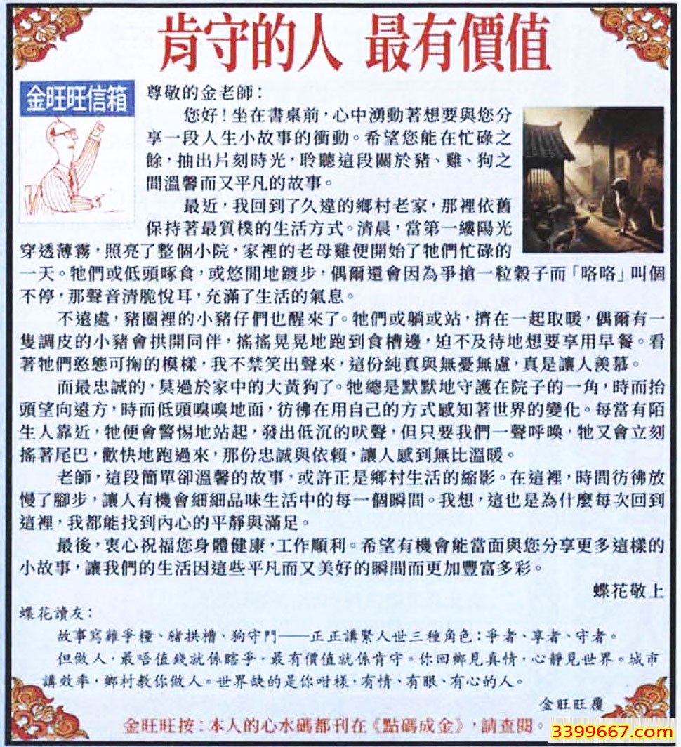 004期:金旺旺信箱彩民推荐→→《肯守的人 最有價值》