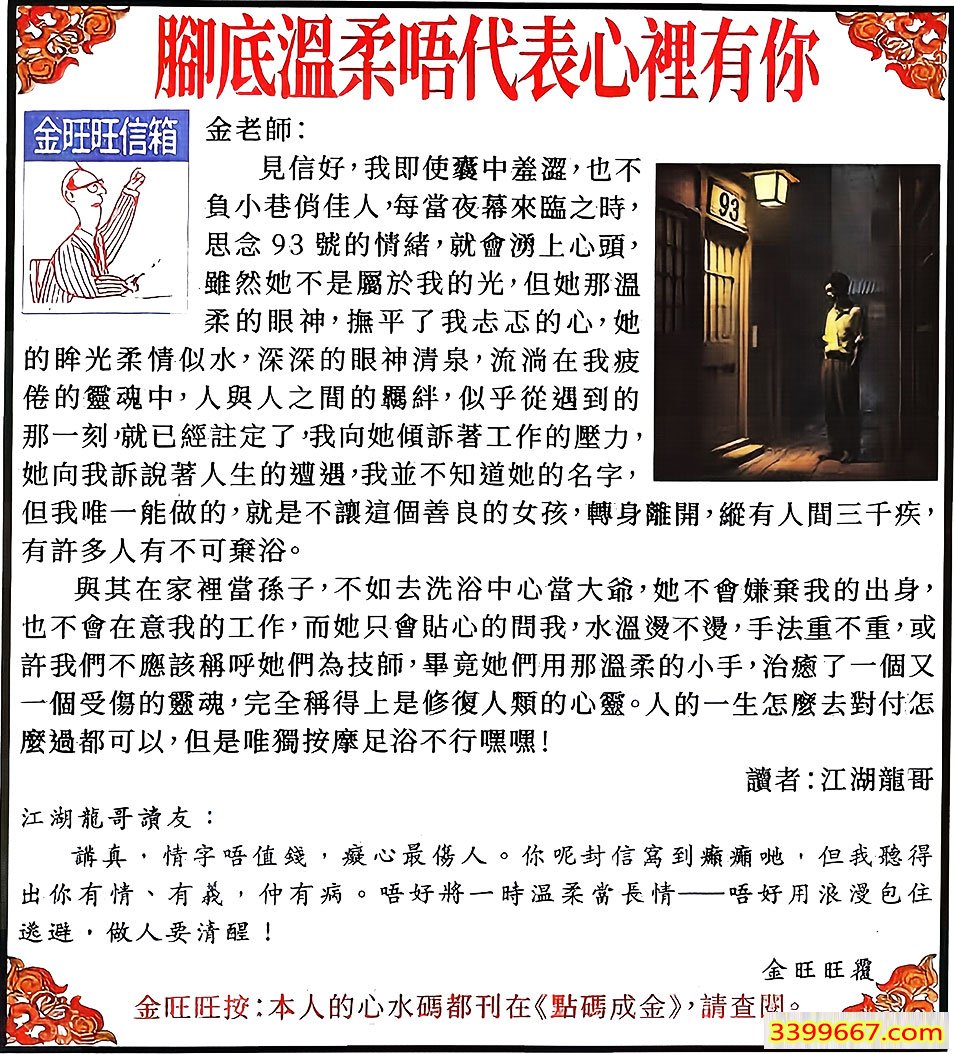 | 主题 :007期:金旺旺信箱彩民推荐→→《腳底溫柔唔代表心裡有你》 |