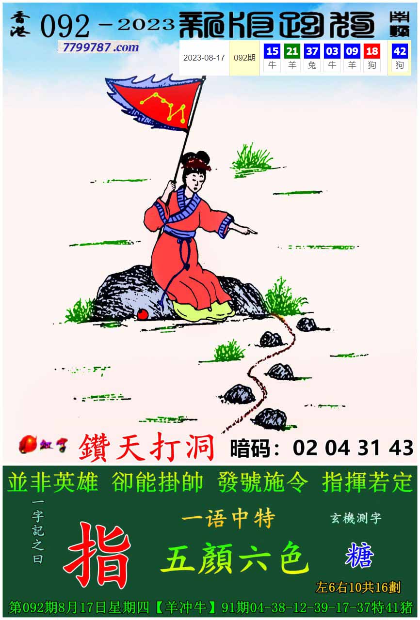主题 :117期:新版跑狗一字記之曰【指】 玄機測字:【俏】