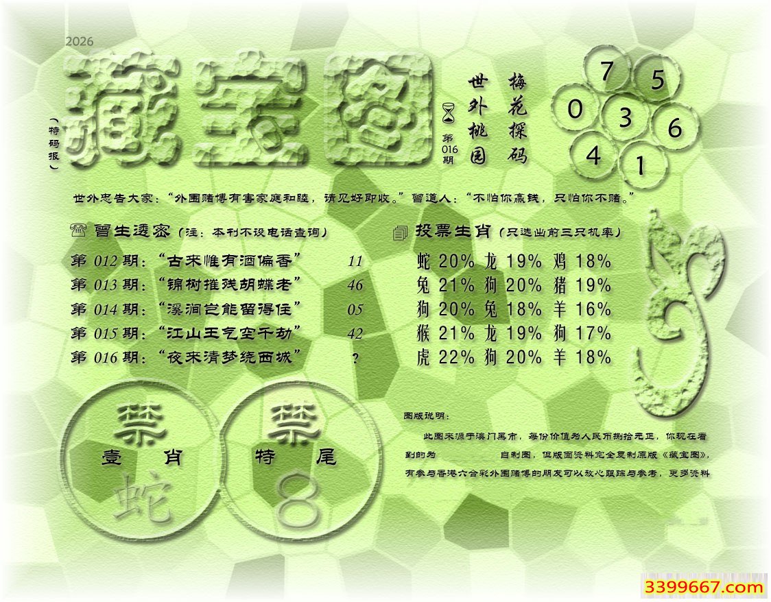 | 主题 :016期藏寶圖 新:魂梦空随沁水流 老:夜来清梦饶西城 禁:蛇 禁:8尾 |