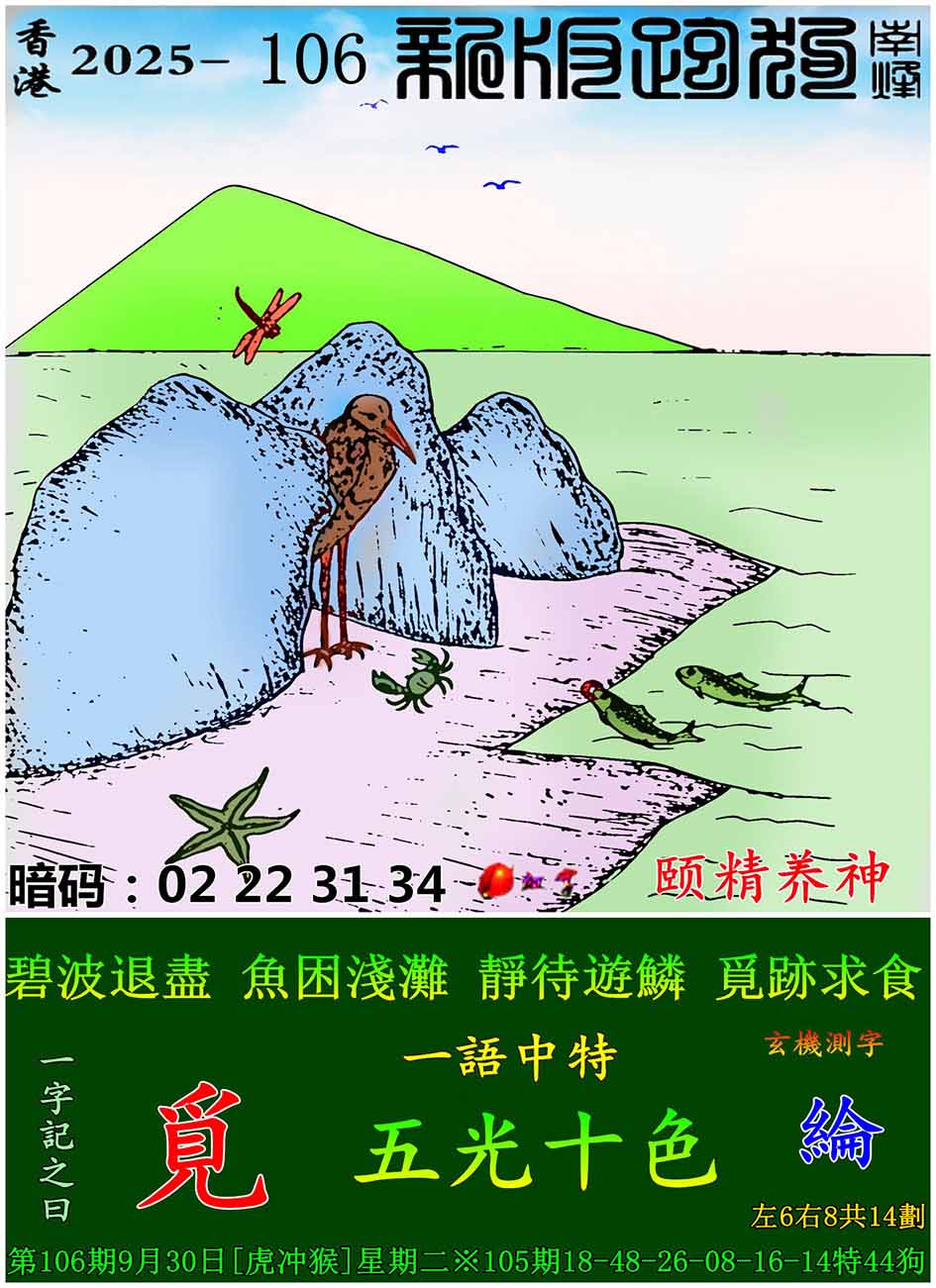主题 :106期:新版跑狗一字記之曰【覓】 玄機測字:【綸】 |