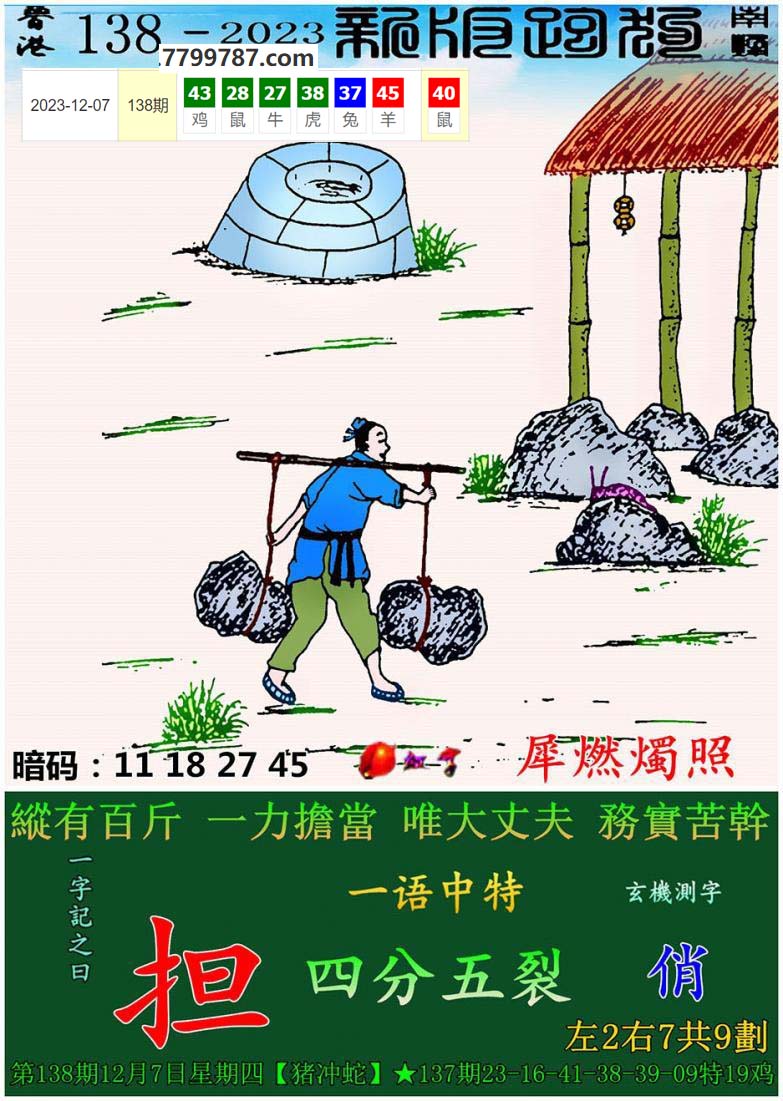 012期:新版跑狗一字記之曰【擔】 玄機測字:【俠】