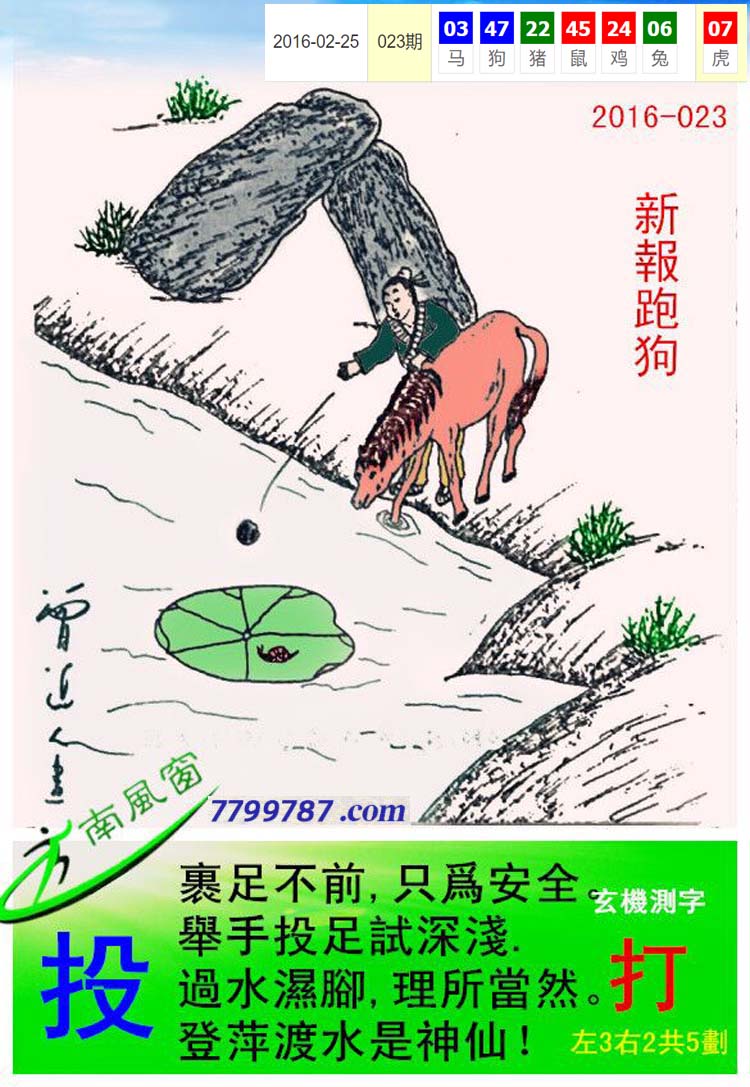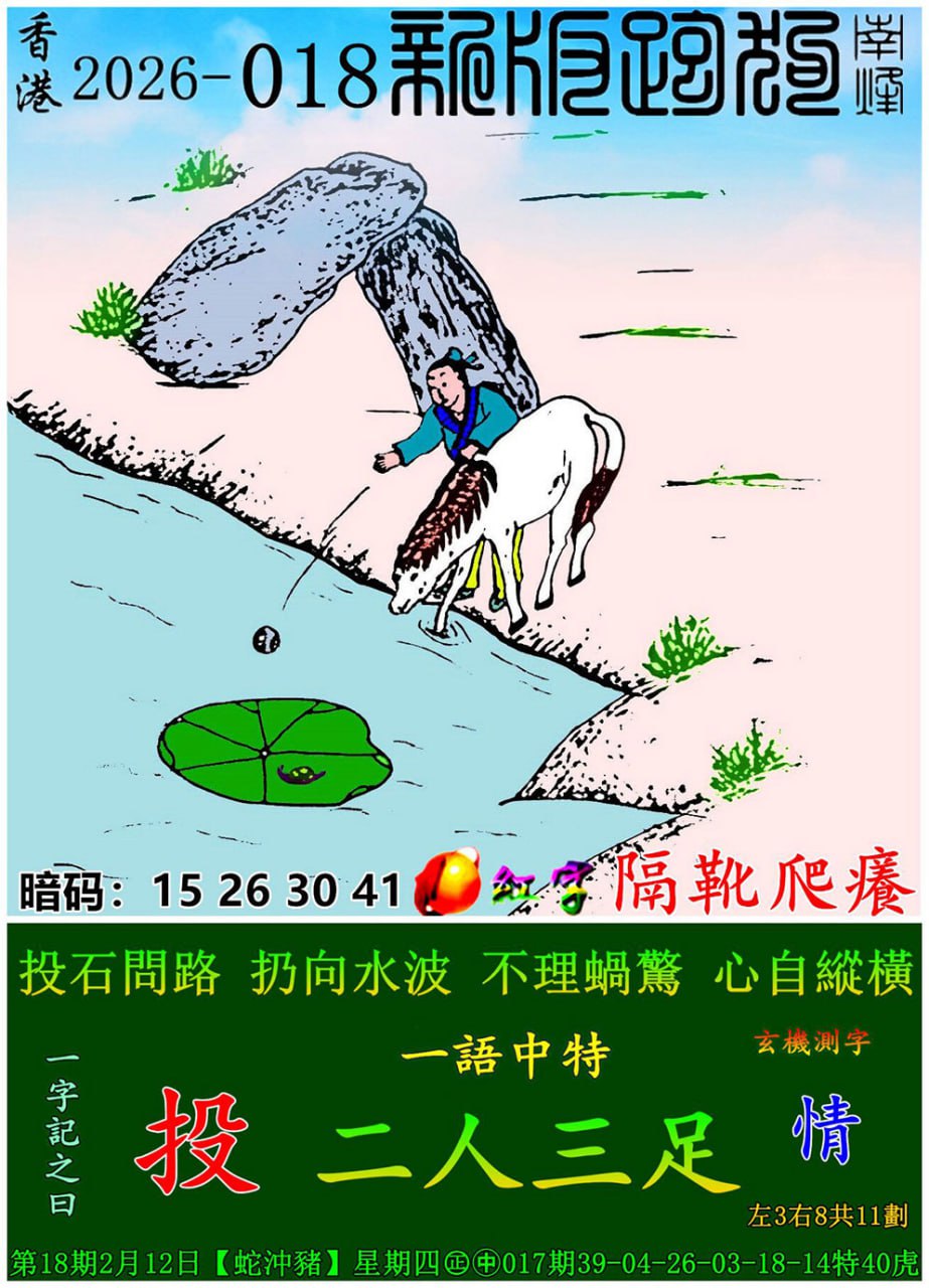 主题 : 018期:新版跑狗一字記之曰【投】 玄機測字:【情】