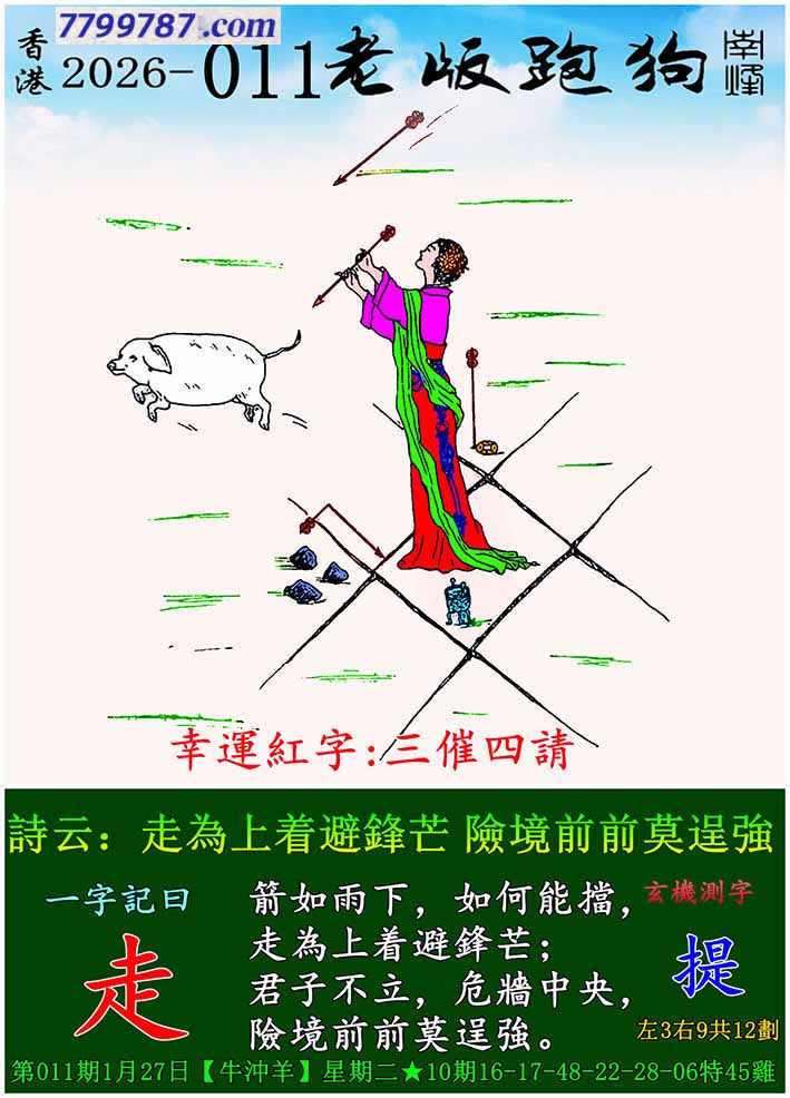 011期老版跑狗一字記之曰:【走】 玄機測字:《提》