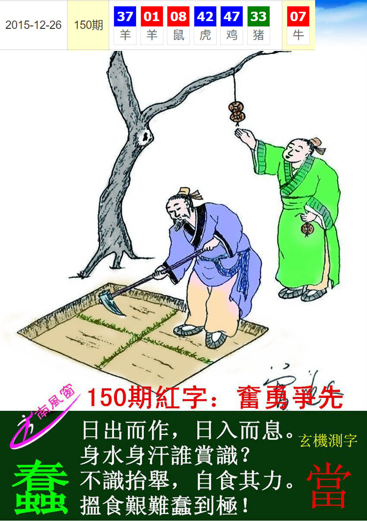 037期:新版跑狗一字記之曰【鋤】 玄機測字:【期】